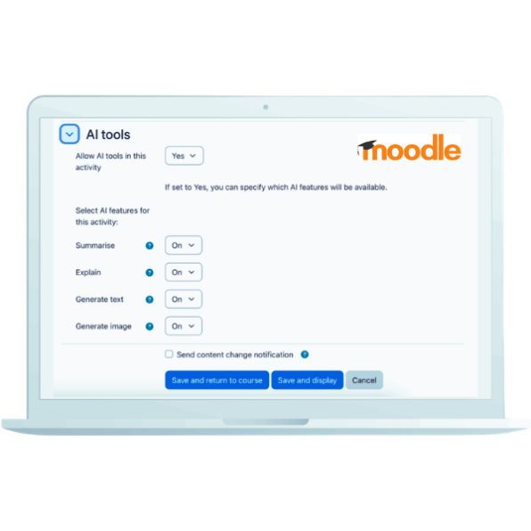 AI remains a growing part of Moodle’s roadmap, and 5.1 gives institutions more granular control over how AI tools are used. Admins can better manage providers and availability at course or activity level, making it easier to align AI use with organisational policies.