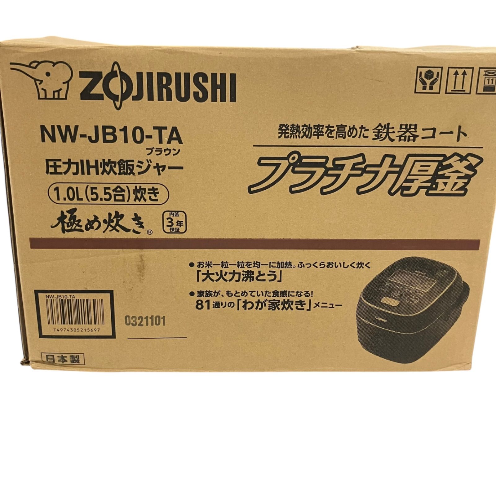 | 商品の特徴 | 商品の説明ご覧いただきまして、ありがとうございます!商品説明型番:NW-JB10-TA■状態:AランクーーーーーーーーーーーーーーーーーーーーーA:ダメージや使用感がほぼない商品B:多少使用感のある商品C:使用感があり、多少ダメージがある商品D:使用感があり、大きなダメージがある商品ーーーーーーーーーーーーーーーーーーーーー ※品ということをご理解いただいた上でのご購入をお願いします。-発送方法 -発送は佐川急便になります。-その他、注意事項 -細かいデザインや状態などは写真にてご確認ください。- ノーマルカメラでの撮影をしておりますので、商品のカラーは画像の通りになります。-ご質問大歓迎です。お気軽にコメントください。■確認事項・丁寧対応・迅速発送を心掛けております。・全国送料無料・メンズorレディース、サイズ表記は正確ではありません。実寸と写真で御判断ください。商品ID:WJ37カテゴリ:2出品スタッフID:0在宅スタッフID:10商品の情報カテゴリー生活家電・空調>>>生活家電>>>炊飯器・餅つき機>>>炊飯器ブランド象印商品の状態未使用に近い発送元の地域東京都 | ||