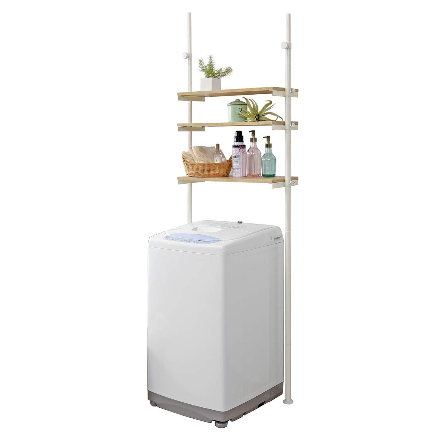 【迅速発送】萩原(Hagihara) ランドリー収納 洗濯機ラック ランドリー 突っ張り 【高さ無段階調節】 木目調 幅70 ナチュラル×ホワイト KTR-3153WH