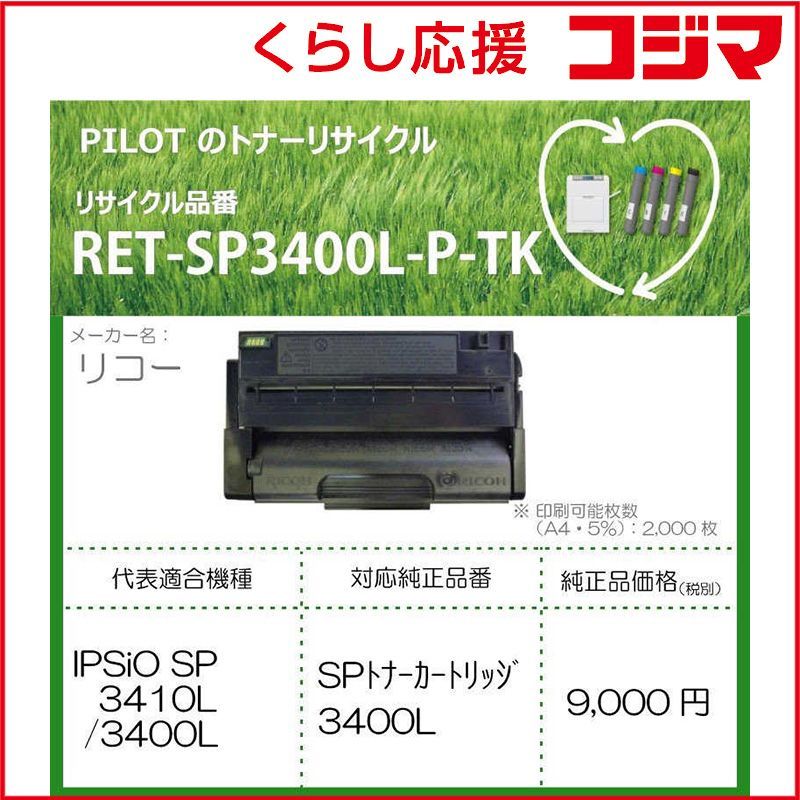 - スマホ・タブレット・パソコン > PC周辺機器 > 【 新品 未開封 】 パイロット リサイクルトナー リコー 3400L互換 ブラック RETSP3400LPTK 未使用 送料無料
