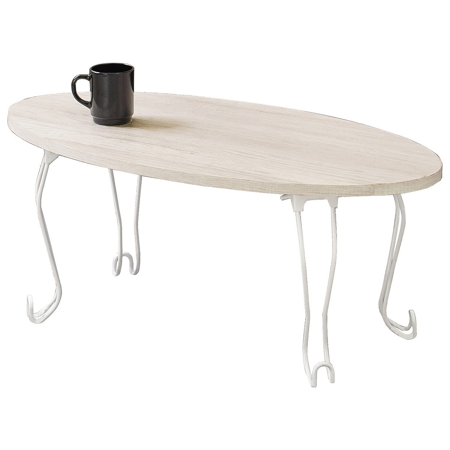 - 家具・インテリア > 机・テーブル > 萩原(Hagihara) ローテーブル センターテーブル テーブル 机 【木目調天板×猫脚スチール脚】 折りたたみ 完成品 軽量 可愛い リビング ソファテーブル 幅80 楕円 ホワイト MT-6864WS