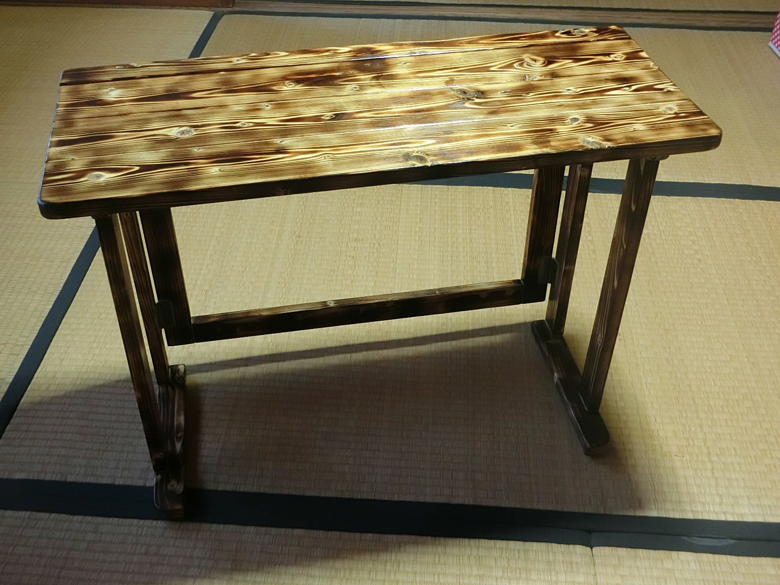 | 商品の特徴 | 商品の説明ご覧頂きありがとうございます。読書やちょっとした作業にピッタリな折り畳み式のテーブルです。必要な時だけテーブルとして使用して、使わないときはコンパクトに折りたたむことができます。表面を炙り加工し、高級ウレタンニス仕上げをしています。レトロ感のある、味わいのある外観にしています。サイズはご家庭のソファーで使うのにちょうどいい高さにしております(約53cm)。他にもベッドサイドにちょうどいい高さのものもご用意しております。素 材:木材(ねじ、蝶番等一部金属)サイズ: 高さ(床~天板上面):約53cm 天板サイズ:約30cm×74cm 収納時サイズ:約74cm×7cm×53cm【発送日数につきまして】この商品は、ご注文いただいてから10~20日程度で発送いたします。【購入に際しての注意事項】・使用時、収納時にはケガをしないよう丁寧にお取り扱いください。・炙り加工をしていますが、模様・焦げ痕等は、使用する木材や場所によりばらつきがあります。不良ではありません。・梱包はリサイクル梱包になります。・配達について、ご希望のお時間帯がございましたら備考欄やメッセージにてお知らせください。・破損した場合は使用を中止し、お住まいの自治体の分別に従ってごみとして処分してください。・ハンドメイド作品であるため、各個体ごとに色・模様等に若干の違いがあります。ご了承ください。商品の情報カテゴリーハンドメイド・手芸>>>家具>>>テーブル・机商品の状態新品、未使用発送元の地域愛知県 | ||