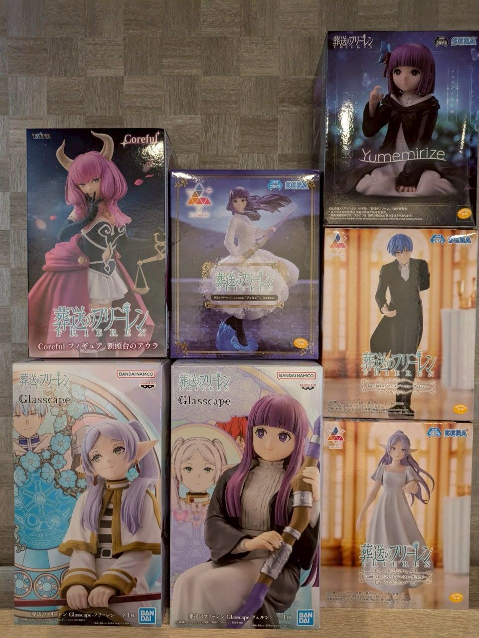 葬送のフリーレン【新品未使用】7個セット☆フリーレン・ヒンメル フォーリヒにて Luminasta☆フェルン あの頃 Yumemirize☆断頭台のアウラ Coreful☆フリーレン・フェルン Glasscape☆フェルン 一般攻撃魔法 Luminasta