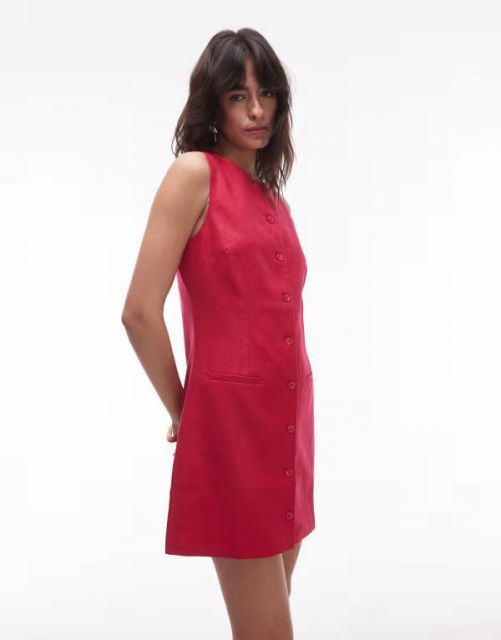 - ファッション > レディース > 【送料無料】 マンゴ レディース ワンピース トップス Mango linen mix button through straight fit mini dress in red RED
