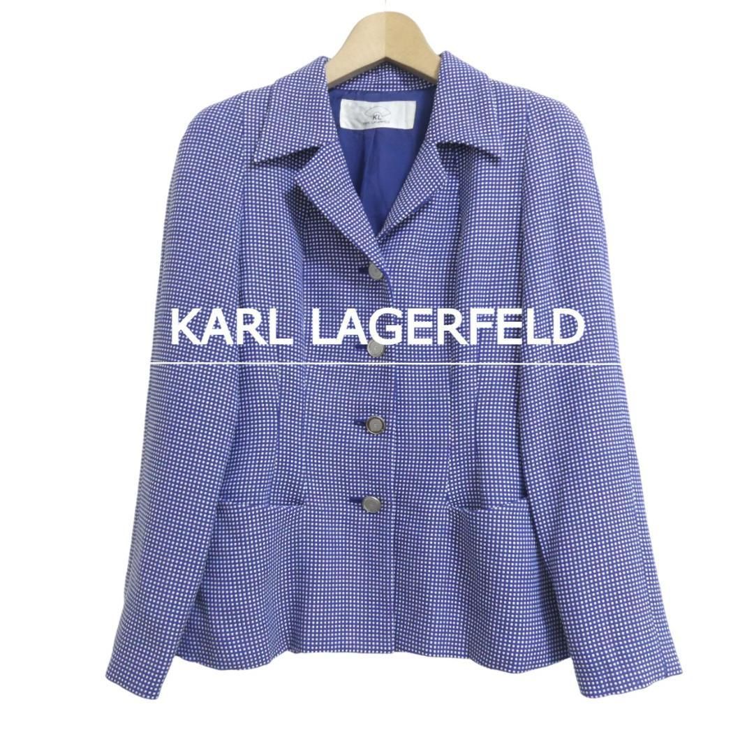 美品 KARL LAGERFELD カールラガーフェルド サイズ36 シングル 4B テーラードジャケット スーツ ドット柄 ロゴ ブルー系 ポリエステル×レーヨン 青 レディース